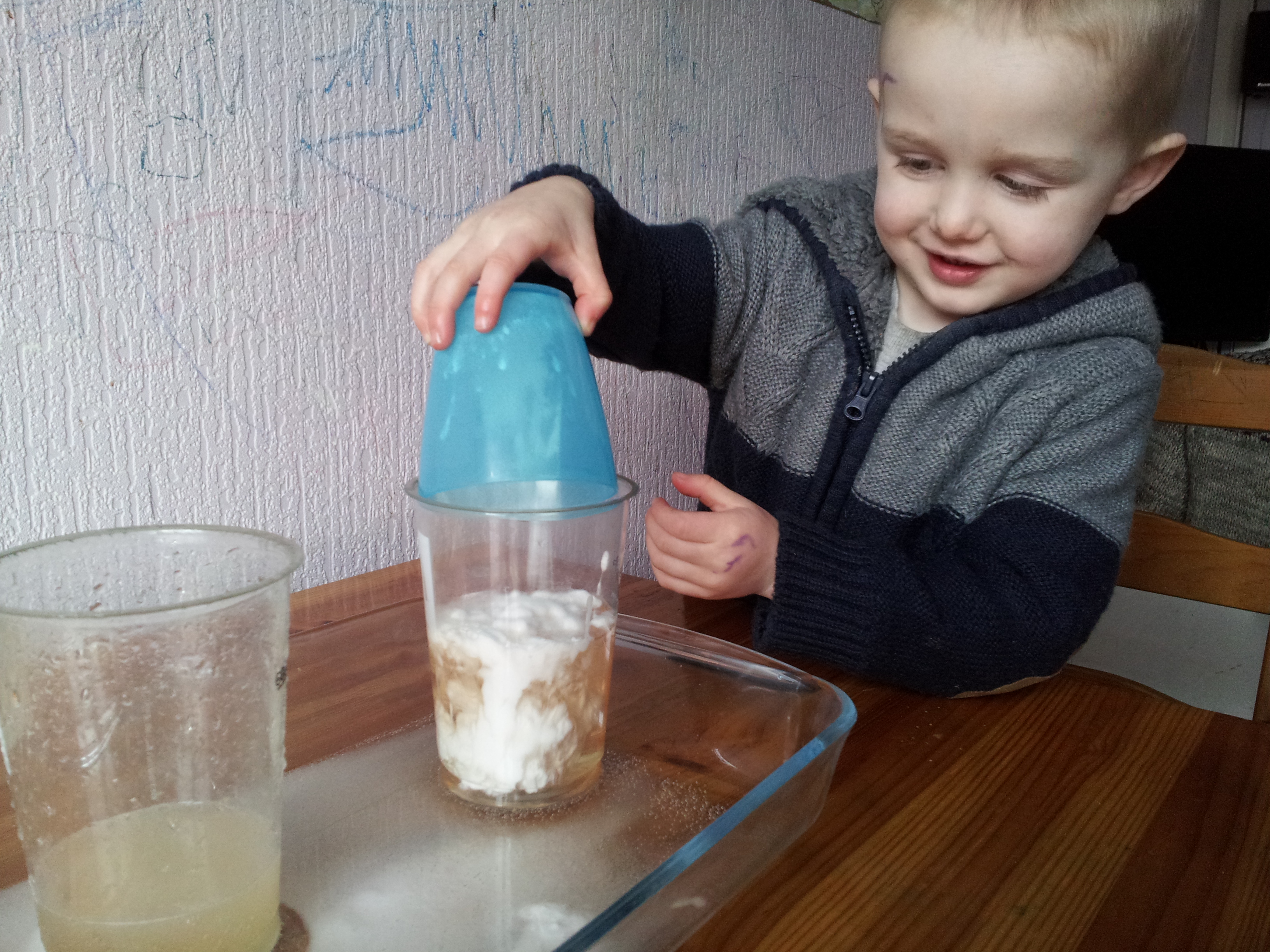 Here goes the second cup, with the washing up liquid in it….