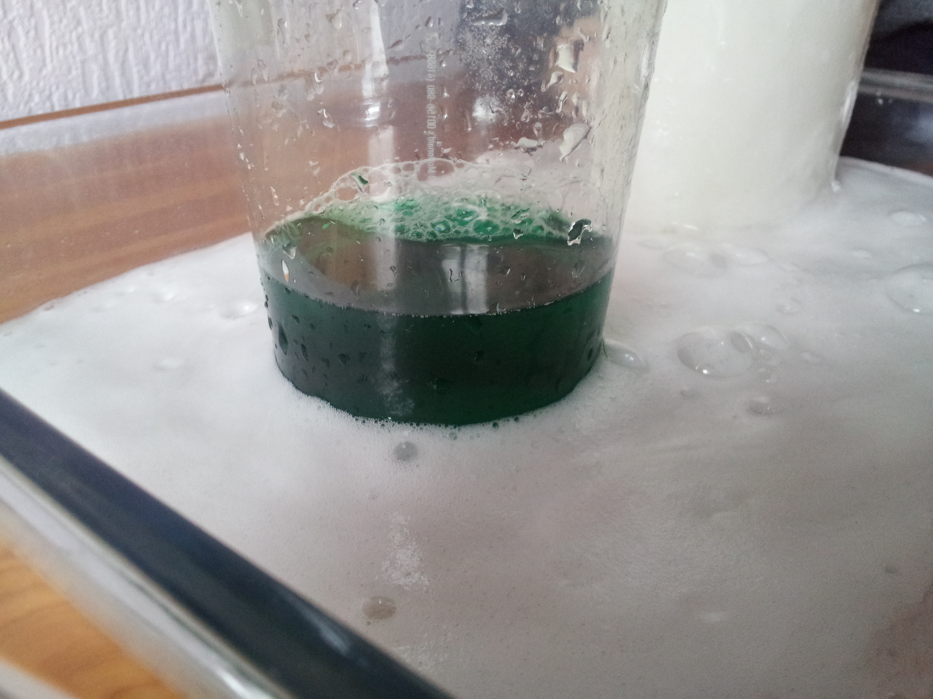 Exciting stuff! This time the reaction was much slower, but produced lots of foam that stayed after the reaction had finished.