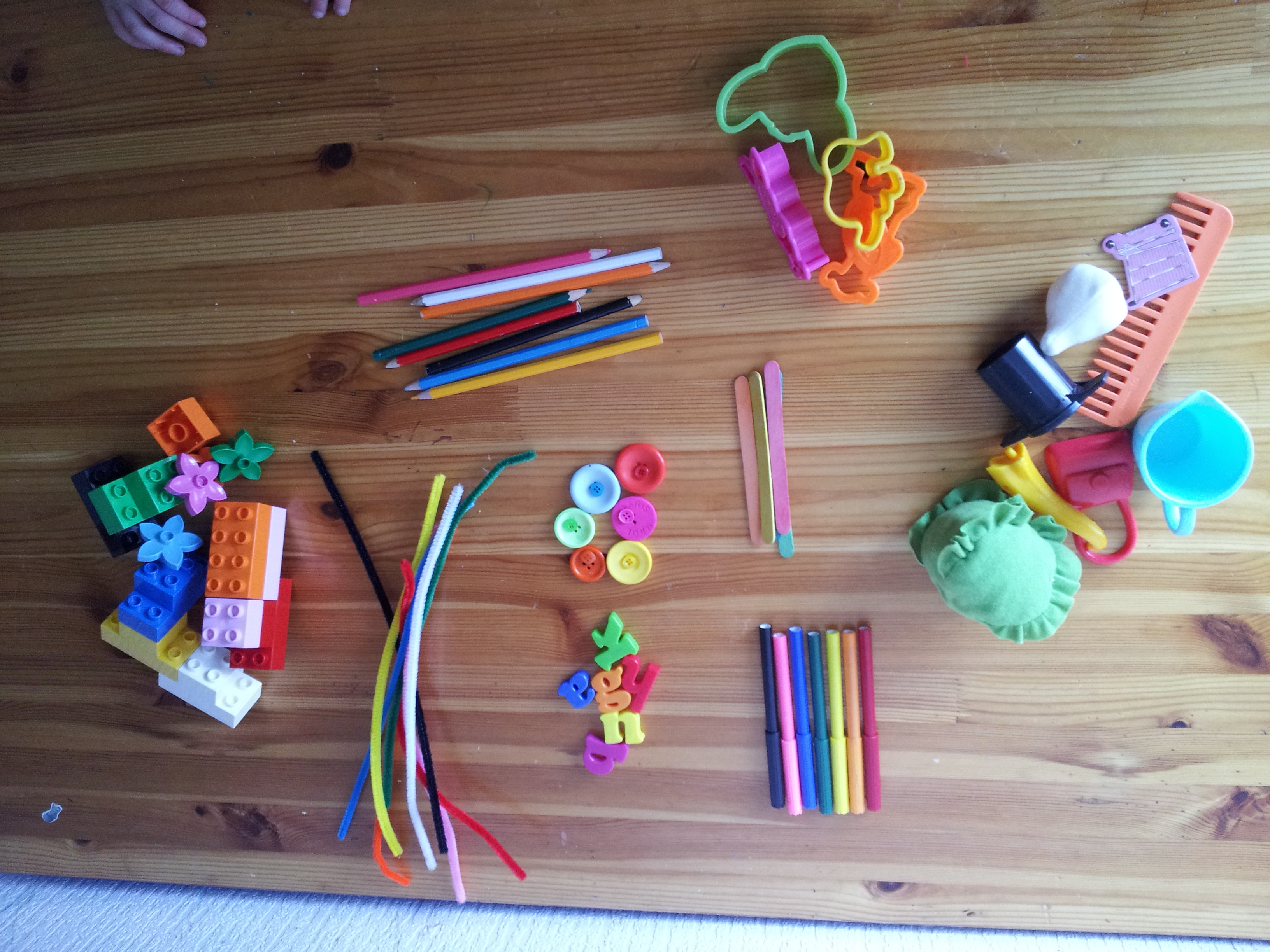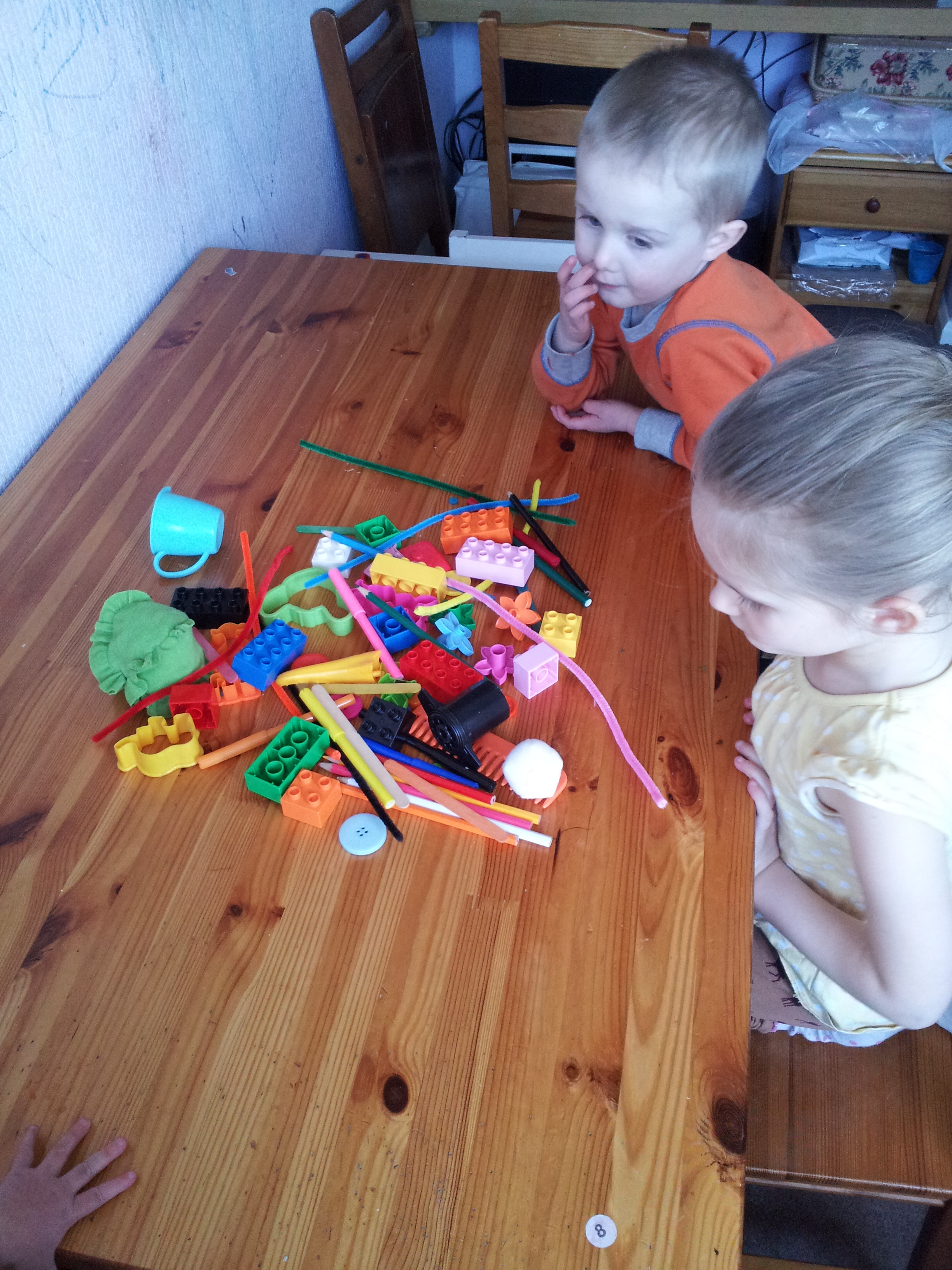 I put them on the table and invited the children to sort them out. I didn’t suggest how, other than to suggest some things might have something in common.