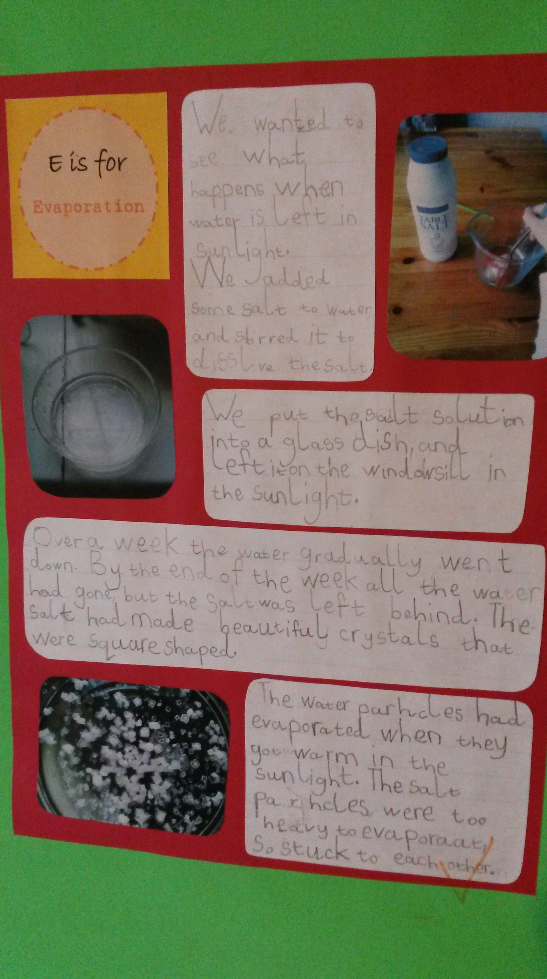 We did a simple evaporation experiment with salt water.