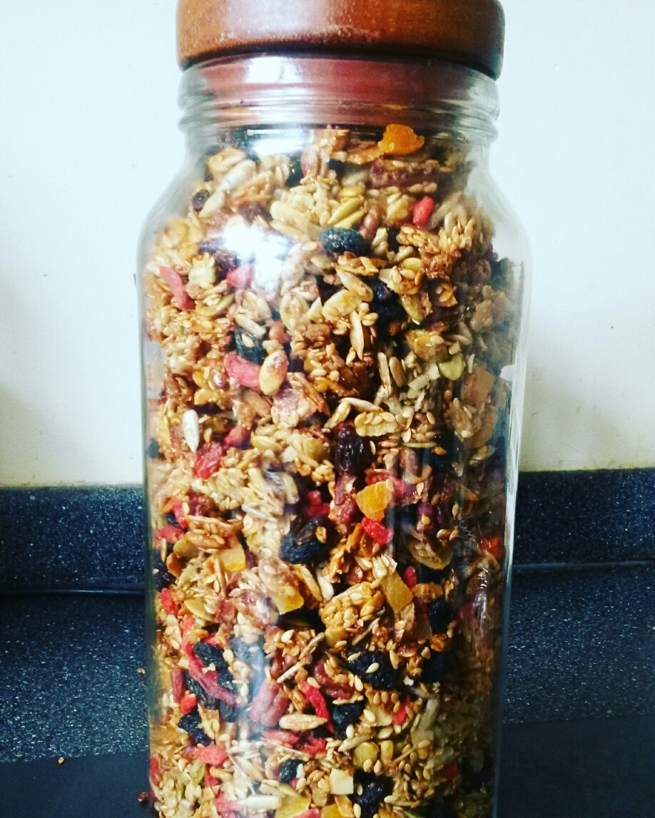 The ingredients listed below are just an example of quantities and what to add. You could use any nuts, seeds or dried fruit you like.