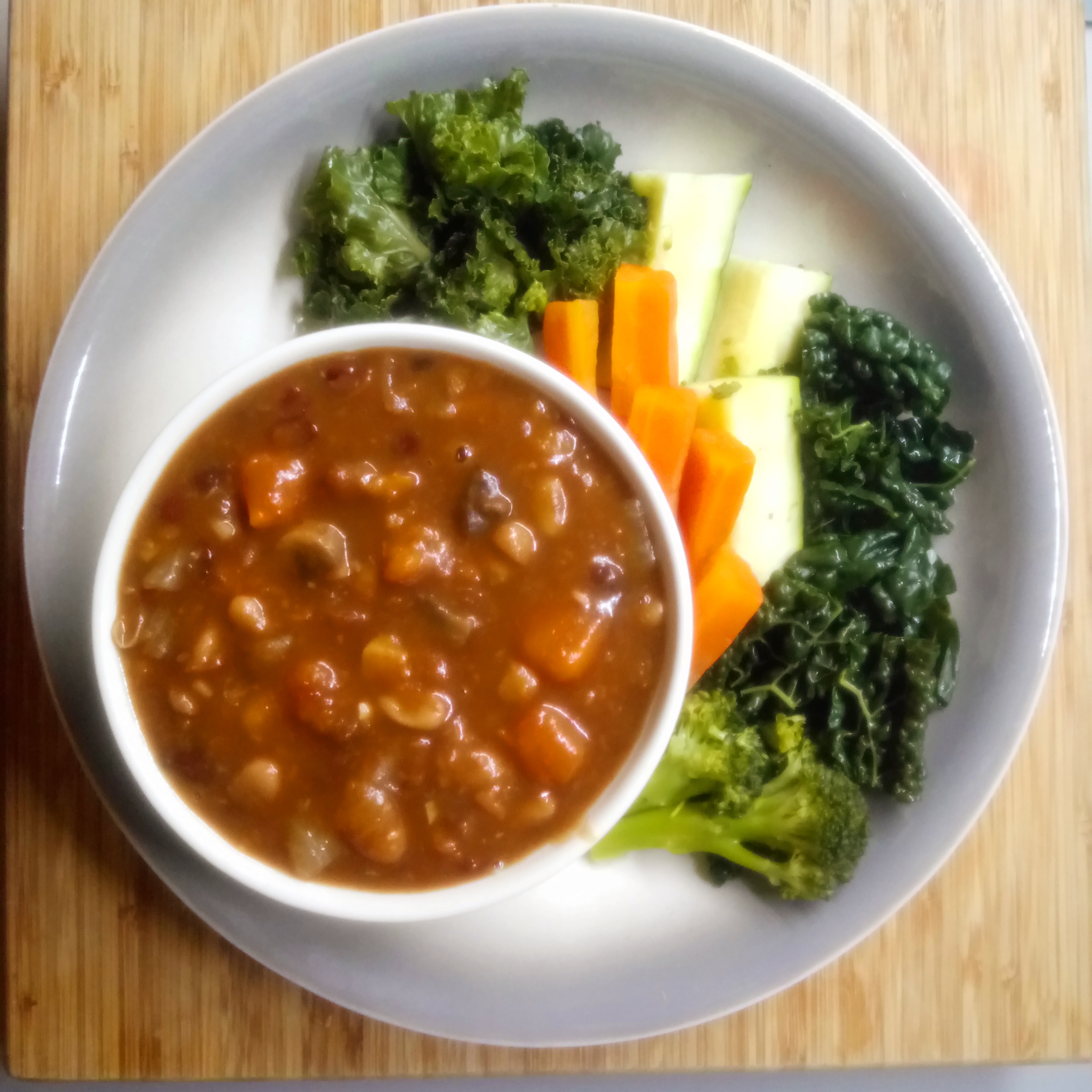 This is a hearty, filling, bean and mushroom casserole. I added some roasted sweet potato for the added sweetness and texture.