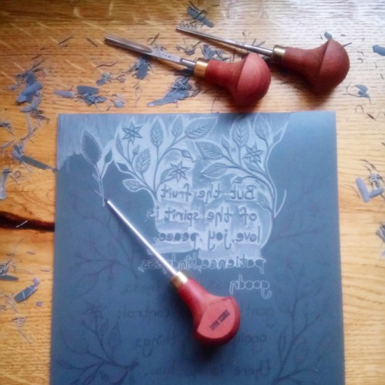 I have started cutting another lino piece. I had a couple of days where I managed to get ahead a little, so I am making good progress so far!